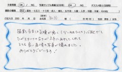 上の子の七五三で利用させていただいた時にとても可愛く撮っていただけたので、今回下の子の百日写真は絶対こちらで撮ってもらいたい!と決めていました。思ったより機嫌が悪く、椅子に座るのも嫌がってぐずったりしてなかなかいい表情がとれず、どうなるかと思いましたが、一生懸命あやしてくれたり、途中で休憩を入れてもらったりしてなんとか可愛い写真がとることが出来ました。裸や私服の時には息子もリラックスして自然な笑顔でした!やっぱりこちらで撮ってもらってよかったです。ありがとうございました。また利用させてもらいますね~!