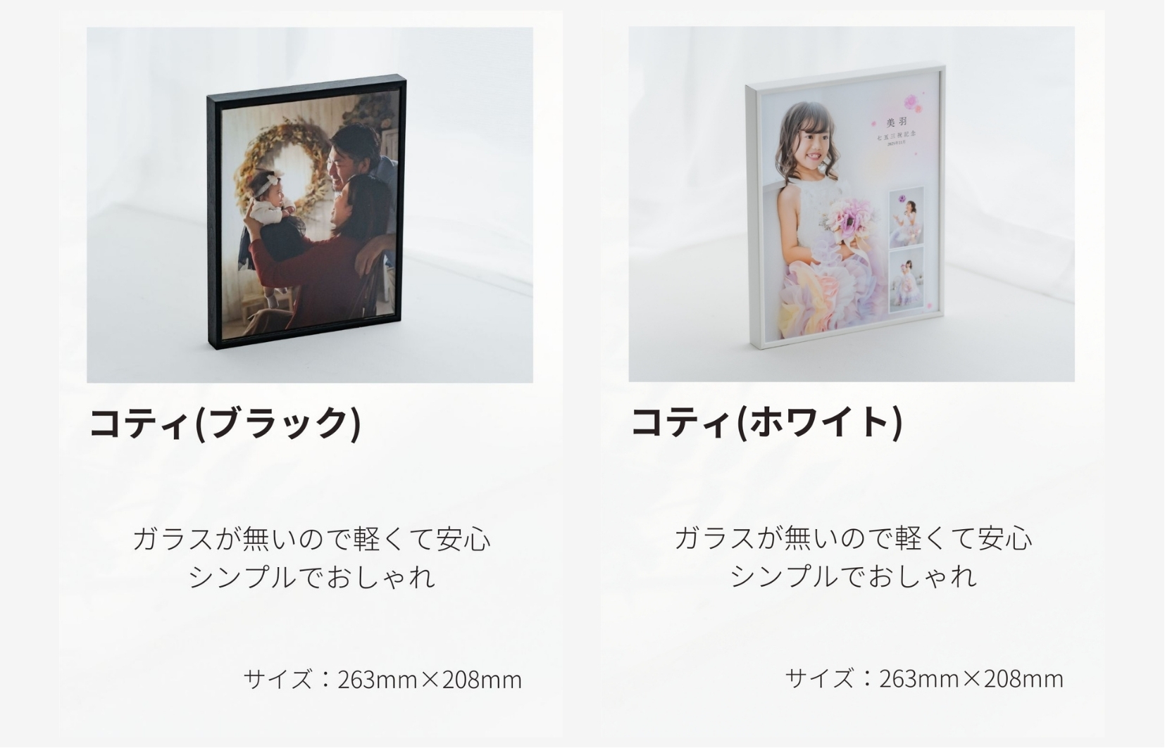 オリジナル写真パネル(コティ)は通常お写真1枚仕上げですが、コースメニューを撮影された方は、デザインあり(お写真3枚)に変更も可能です。