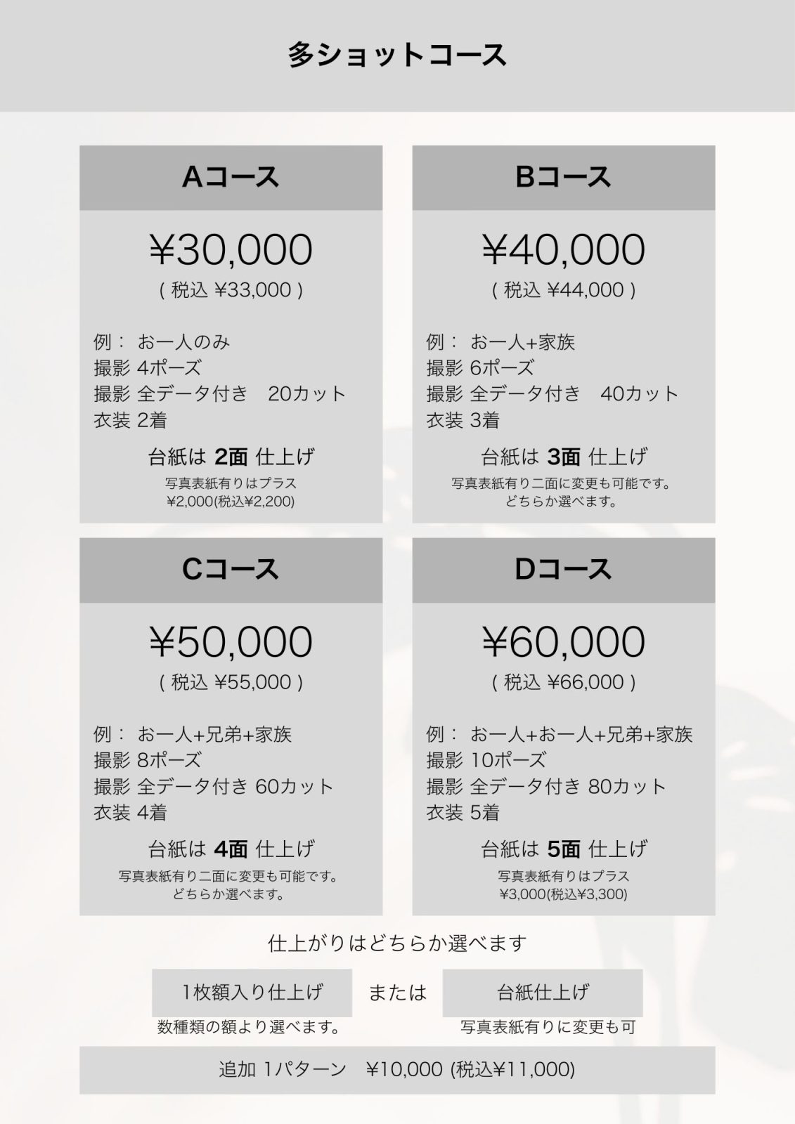 ※衣装お支度代は各コースにそれぞれ含まれています。