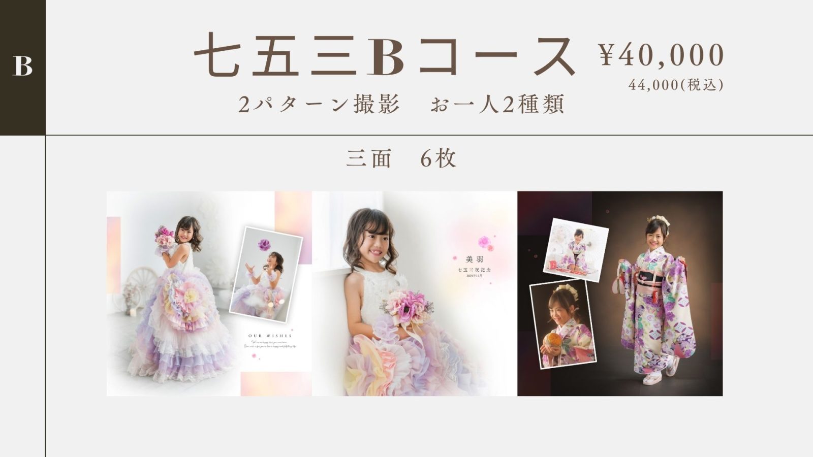 中3までのお子様の料金となります。※写真撮影のみの料金となります。